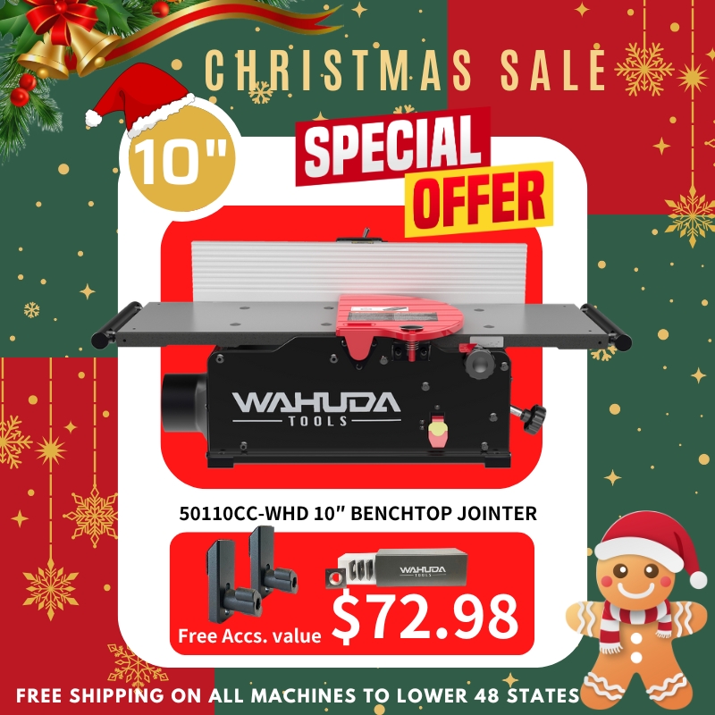 Awesome. I cannot say enough great things about the 10” Bench Top Jointer 50110CC-WHD. With the carbide inserts the cutter produces a super smooth finish on my project wood. This machine has plenty of power and the Engineering and precision build is evident when you operate it. I purchased the Universal Stand 80300US-WHD and it’s an outstanding build that fits this jointer perfectly. I really think the set screw fence stop adjustments for 90 and 135 degrees isn’t solid enough to count on. I will use my own precision gages when I make these adjustments. Thanks Wahuda Tools for the excellent products.