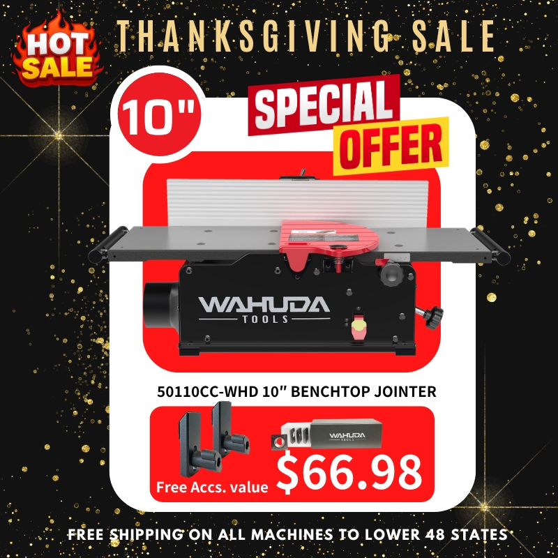 - Perfect For Job Sites Or Small Shops. Depending on your needs or your shop’s size, Wahuda Tools have 6, 8, and 10-inch wood jointers that will do the job right. They’re conveniently movable, too!