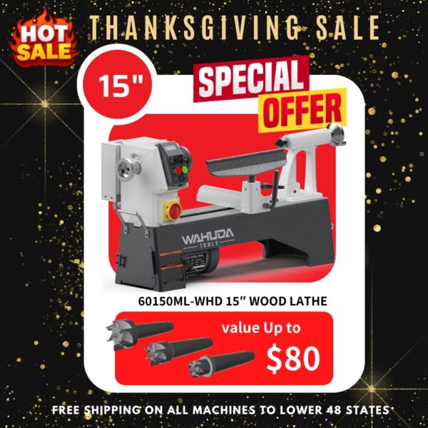 Wahuda Tools has expanded our Lathe offering to serve customers in need of dealing with more robust work . Our new 15 inch lathe is 815 mm long x 330 mm wide x 430 mm high and is portable, but big enough, to satisfy the needs of advanced users.