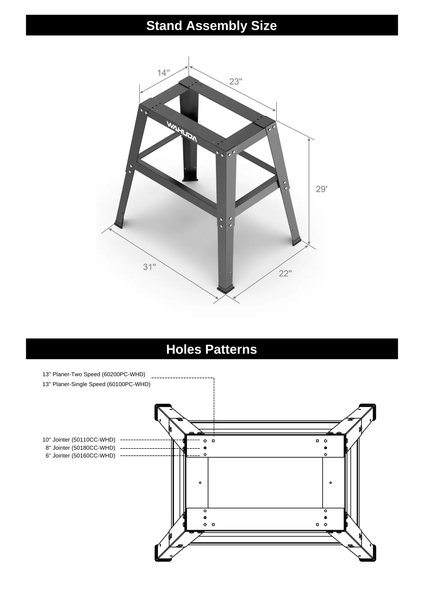 Heavy-Duty Universal stand directly fits All Wahuda jointers and planers . Other models require you to attach a top to support them and please refer to the size diagram below. Casters are not available for this stand.